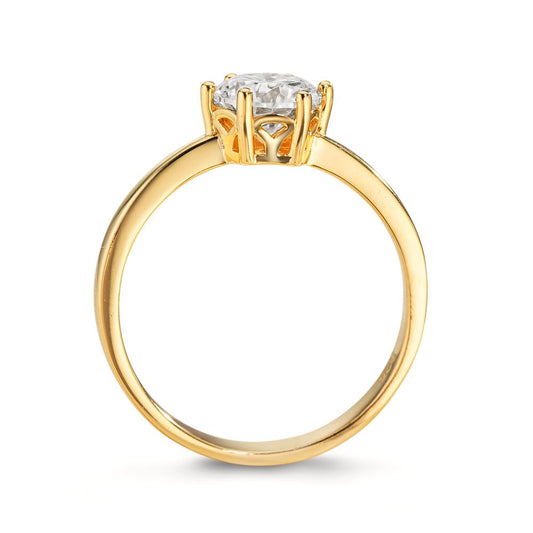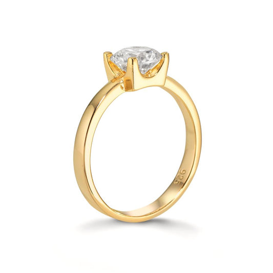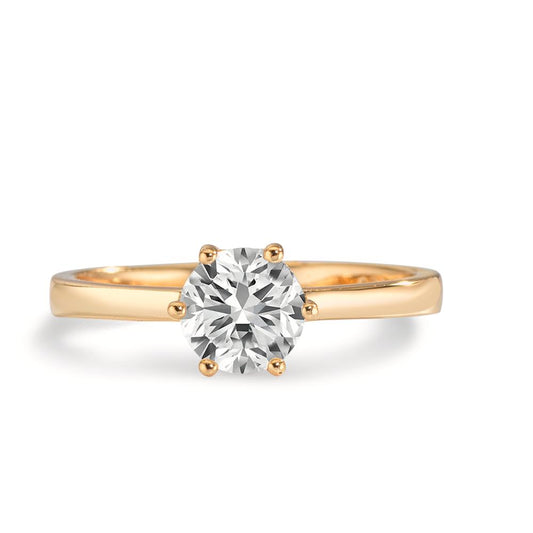 Bague solitaire Argent Moissanite blanc, 0.80 ct, brillant, GRA, 6 mm Plaqué or