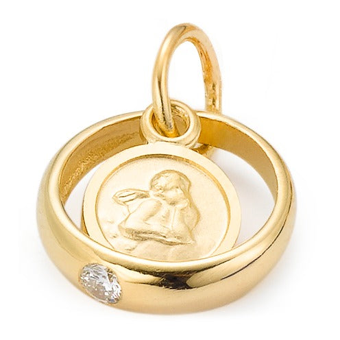 Bague de baptême Or jaune 18K Diamant blanc, 0.01 ct, p1 Ange gardien Ø10 mm