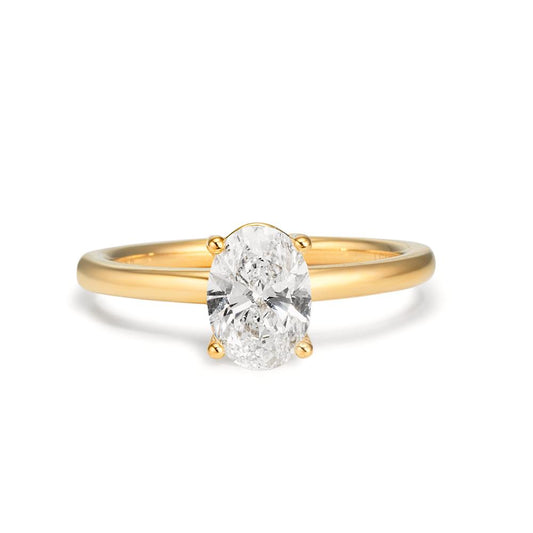 Bague solitaire Or jaune 18K Cultivé en laboratoire de diamant 1 ct, ovale, tw-vsi, IGI