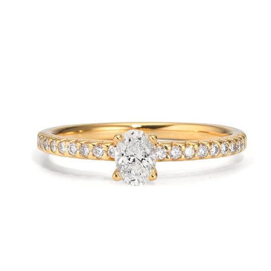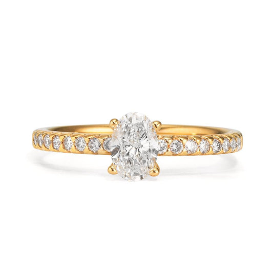 Bague solitaire Or jaune 18K Diamant blanc, 0.20 ct, 18 Pierres, brillant, w-si, Diamant blanc, 0.30 ct, brillant, w-si