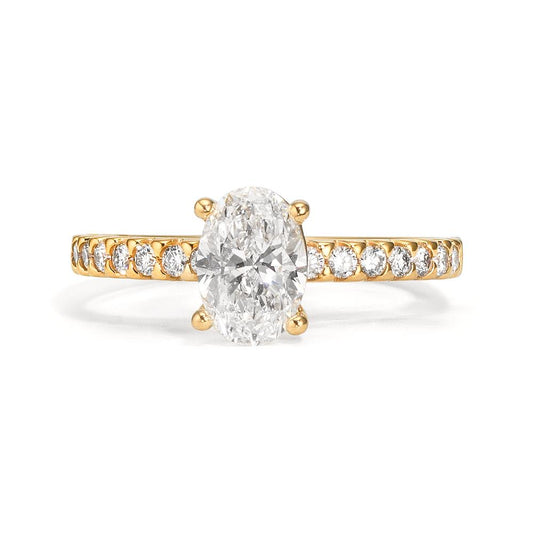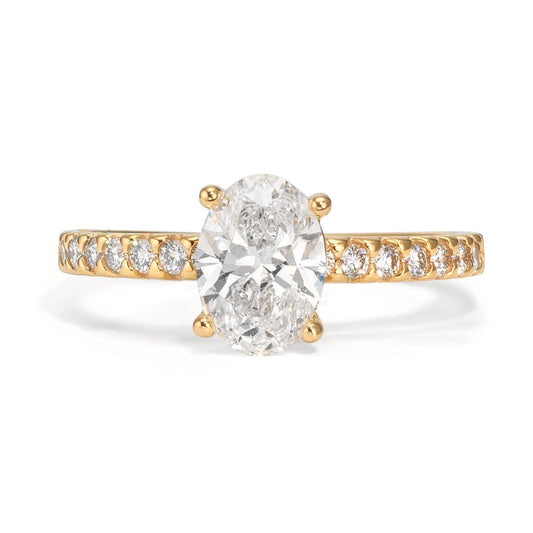 Bague solitaire Or jaune 18K Cultivé en laboratoire de diamant 1.25 ct, ovale, tw-vsi, IGI