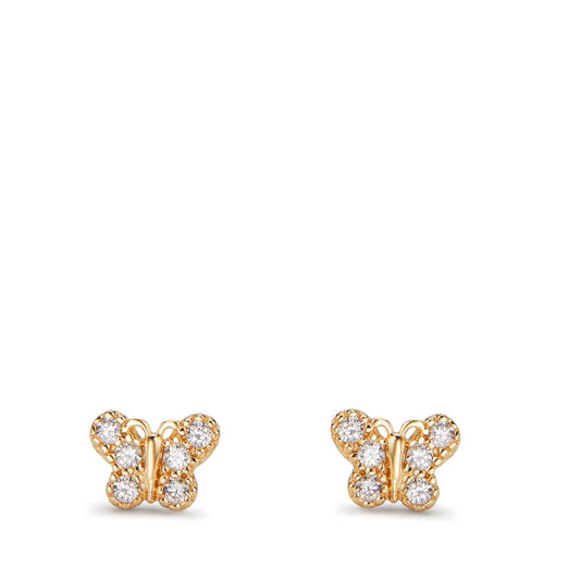 Clous d'oreilles Or jaune 14K Zircone 12 Pierres Papillon Ø5 mm
