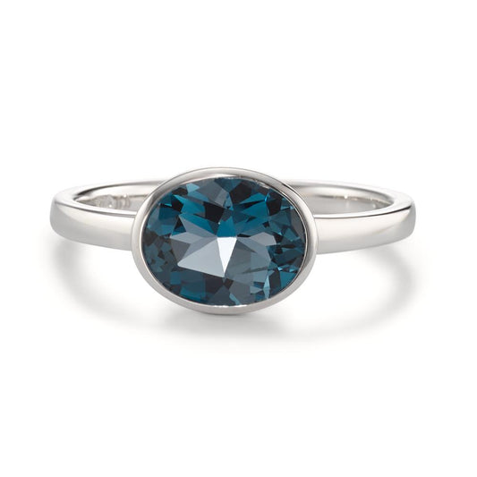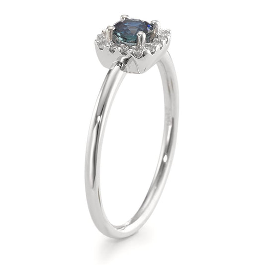 Bague solitaire Or blanc 18K Saphir bleu, Diamant blanc, 0.07 ct, 12 Pierres, w-si