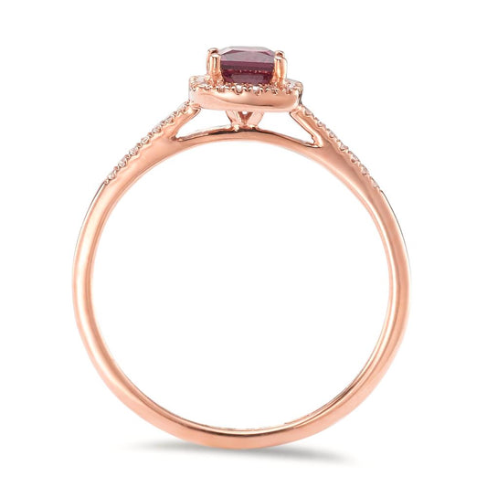 Bague Or rouge 14K Rhodolite, Diamant 0.09 ct, 32 Pierres, brillant, w-si