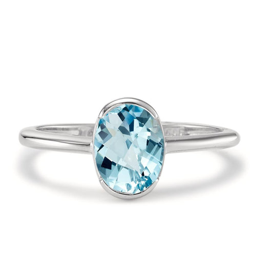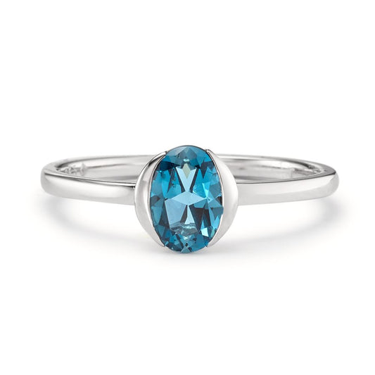 Bague Or blanc 14K Topaze bleu Ø6.5 mm