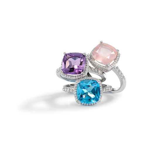 Bague Or blanc 18K Quartz rose rose, Diamant blanc, 0.20 ct, 40 Pierres, w-si Ø11 mm