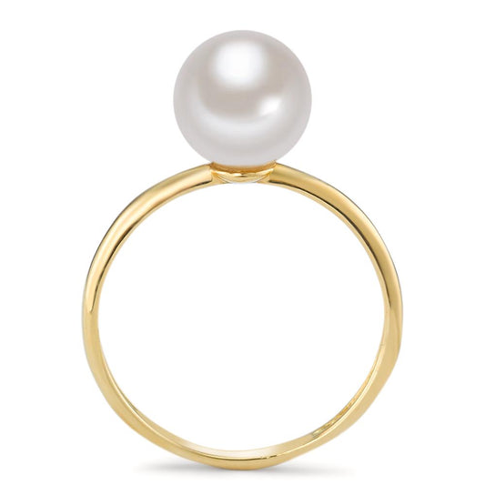 Bague Or jaune 18K perle d'eau douce blanc, 8 mm