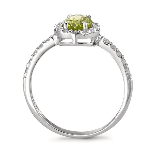 Bague Or blanc 18K Péridot, Zircone blanc Ø10 mm