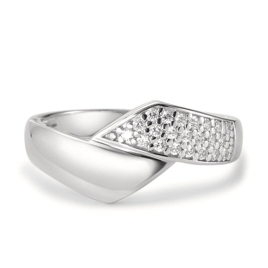 Bague Or blanc 18K Zircone 13 Pierres perle d'eau douce blanc, 7.5 mm