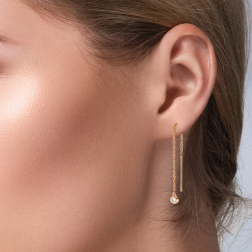 Boucles d'oreilles pendantes Bronze Zircone 2 Pierres Plaqué or Ø3 mm