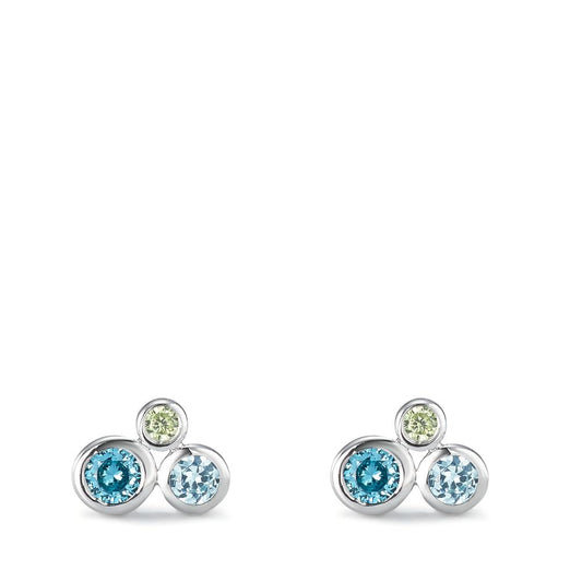 Clous d'oreilles Argent Zircone coloré, 6 Pierres Rhodié Ø7.5 mm
