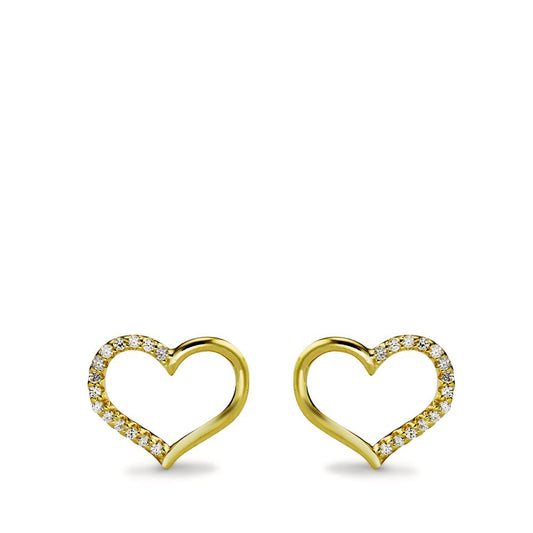 Clous d'oreilles Argent Zircone 28 Pierres jaune Plaqué or Coeur Ø10 mm