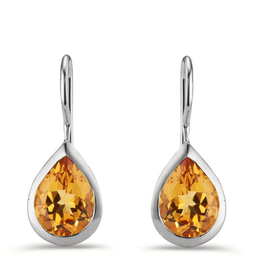 Pendant d'oreilles Argent Citrine 2 Pierres Rhodié