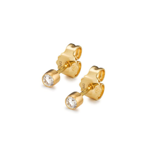 Clous d'oreilles Or jaune 18K Diamant 0.12 ct, 2 Pierres, w-si Ø3 mm