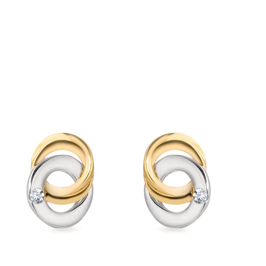 Clous d'oreilles Or blanc 18K, Or jaune 18K Diamant blanc, 0.03 ct, 2 Pierres, brillant, w-si