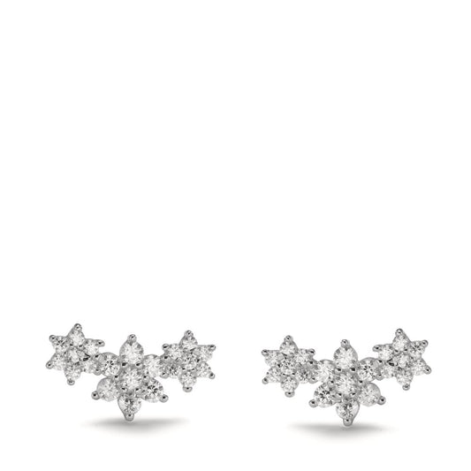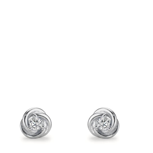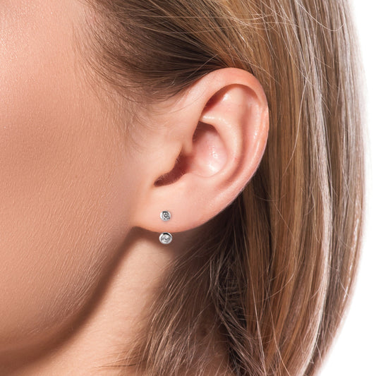 Pendant d'oreilles Argent Zircone blanc, 2 Pierres Rhodié Ø10 mm