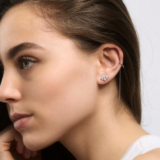 Boucle d'oreille glissante Argent Zircone 26 Pierres Rhodié