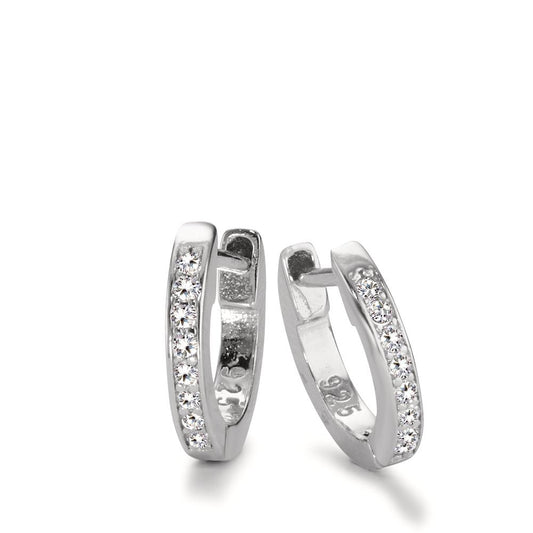 Créoles à charnières Or blanc 9K Zircone 14 Pierres