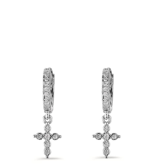 Créoles à charnières Argent Zircone 32 Pierres Rhodié Croix