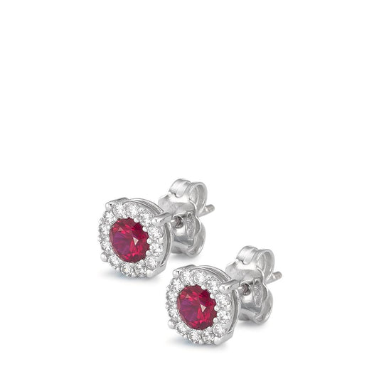 Clous d'oreilles Or jaune 14K Zircone rouge, 2 Pierres Ø4.3 mm