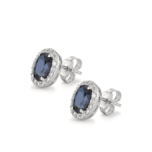 Clous d'oreilles Or blanc 18K Zircone bleu saphir