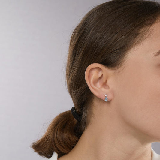 Clous d'oreilles Argent Topaze bleu, 2 Pierres, Zircone blanc, 2 Pierres Rhodié