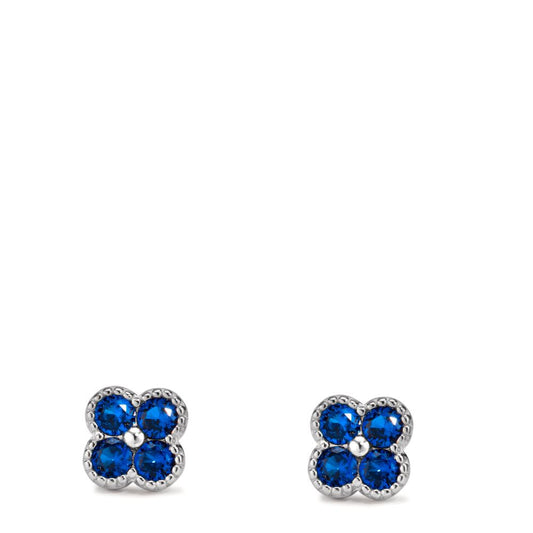 Clous d'oreilles Argent Zircone bleu saphir, 8 Pierres Rhodié Fleur Ø7.5 mm