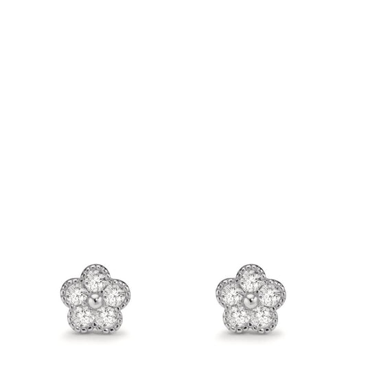 Clous d'oreilles Argent Zircone 10 Pierres Rhodié Fleur Ø6 mm
