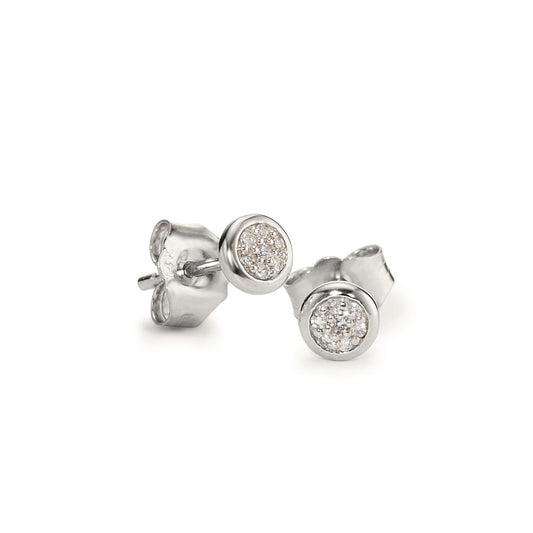 Clous d'oreilles Or blanc 14K Diamant 0.04 ct, 14 Pierres, w-si Ø4.5 mm