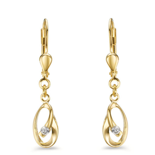 Pendant d'oreilles Or jaune 9K Zircone 2 Pierres