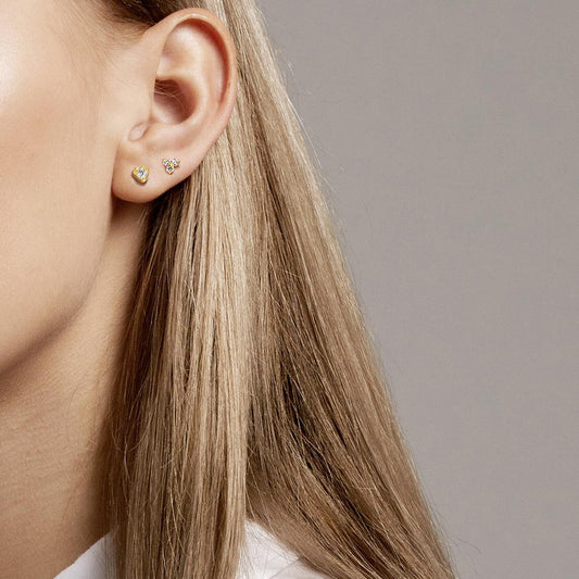 Clous d'oreilles Argent Zircone jaune Plaqué or Coeur Ø4.5 mm