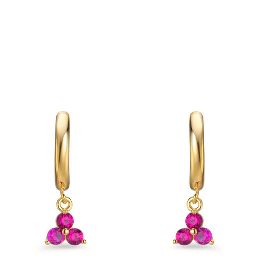 Créoles à charnières Argent Zircone rose, 6 Pierres jaune Plaqué or