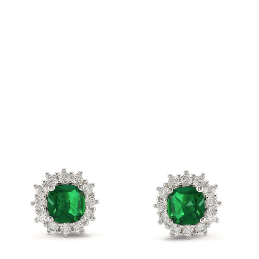Clous d'oreilles Argent Zircone vert, 26 Pierres Rhodié Ø10.5 mm