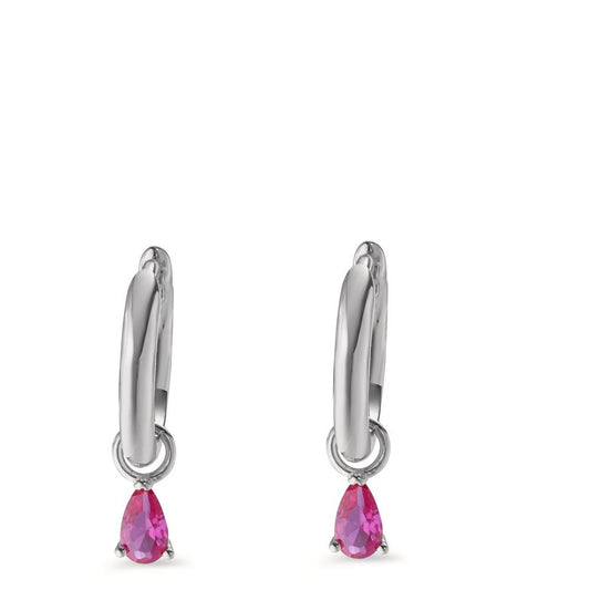 Créoles à charnières Argent Zircone rose, 2 Pierres Rhodié
