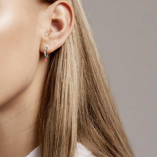 Créoles à charnières Argent Zircone orange, 2 Pierres Rhodié