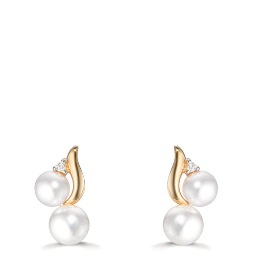 Clous d'oreilles Or jaune 18K Diamant 0.015 ct, 2 Pierres, w-si perle d'eau douce, 2 Perles 4.5-5 mm