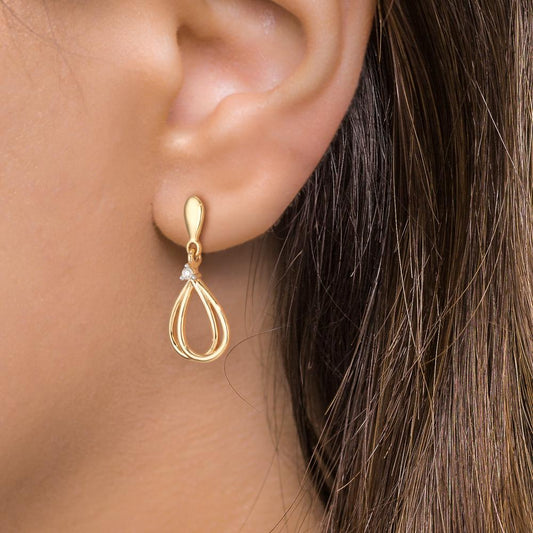 Pendant d'oreilles Or jaune 18K Diamant 0.02 ct, 2 Pierres, w-si