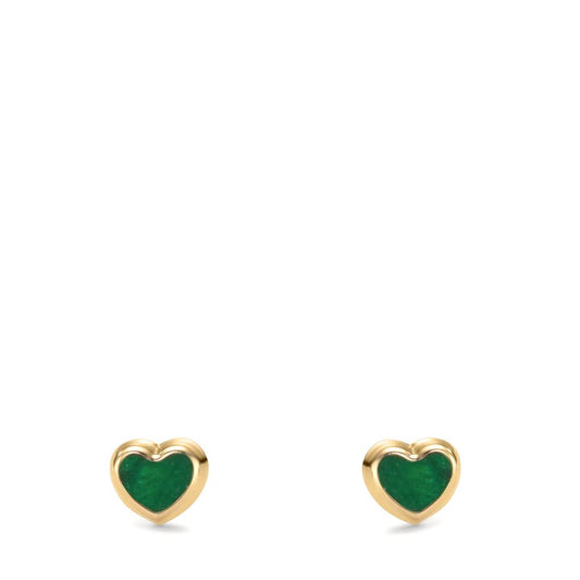 Clous d'oreilles Or jaune 14K [synth. Stein] vert, 2 Pierres Coeur Ø4.5 mm