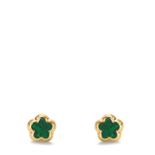 Clous d'oreilles Or jaune 14K [synth. Stein] vert, 2 Pierres Fleur Ø5.5 mm