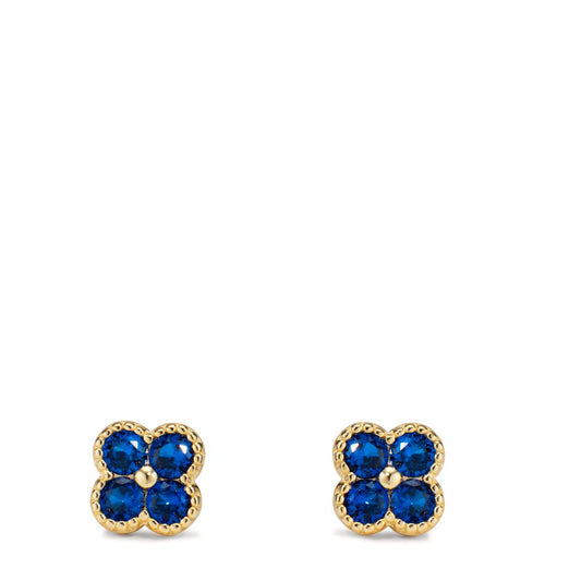 Clous d'oreilles Argent Zircone bleu saphir, 8 Pierres jaune Plaqué or Fleur Ø7.5 mm