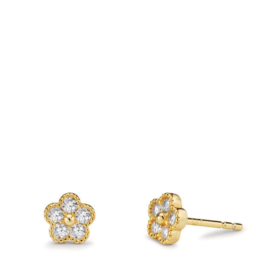 Clous d'oreilles Argent Zircone 10 Pierres jaune Plaqué or Fleur Ø6 mm