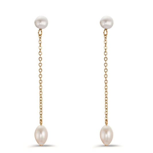 Pendant d'oreilles Acier inoxydable jaune PVD perle d'eau douce, 4 Perles 6-7 mm