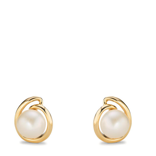 Clous d'oreilles Or jaune 14K perle d'eau douce, 2 Perles, 7.5 mm
