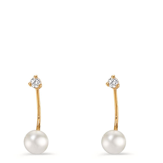Pendant d'oreilles Or jaune 18K Diamant 0.06 ct, 2 Pierres, w-si perle d'eau douce blanc, 2 Perles, 4.5 mm