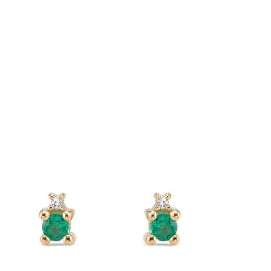Clous d'oreilles Or jaune 18K Émeraude 0.24 ct, 2 Pierres Ø3.5 mm