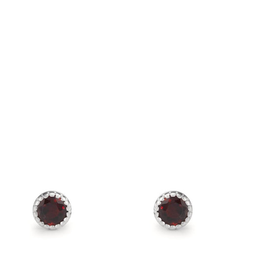 Clous d'oreilles Argent Grenat 2 Pierres Ø4 mm