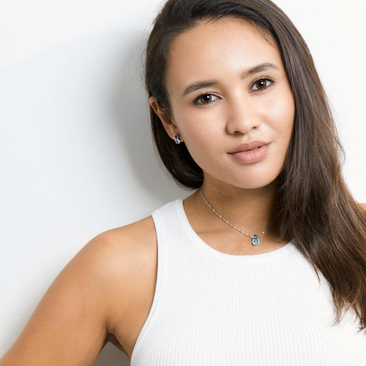 Clous d'oreilles Or blanc 18K Topaze London Blue 4 Pierres