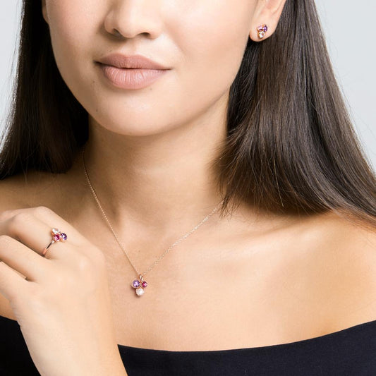 Clous d'oreilles Or rouge 18K Améthyste 2 Pierres, Rhodolite 2 Pierres, Quartz rose 2 Pierres Ø9 mm