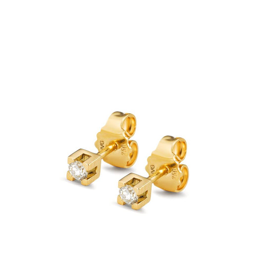 Clous d'oreilles Or jaune 18K Diamant 0.07 ct, 2 Pierres, brillant, w-si
