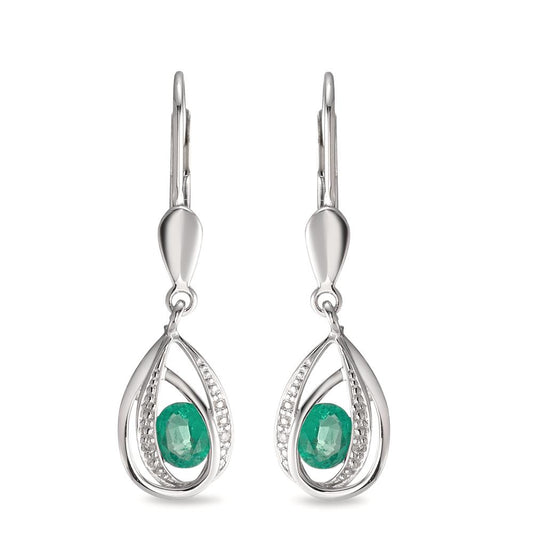 Pendant d'oreilles Or blanc 14K Émeraude 2 Pierres, Diamant 0.01 ct, 2 Pierres, w-pi1